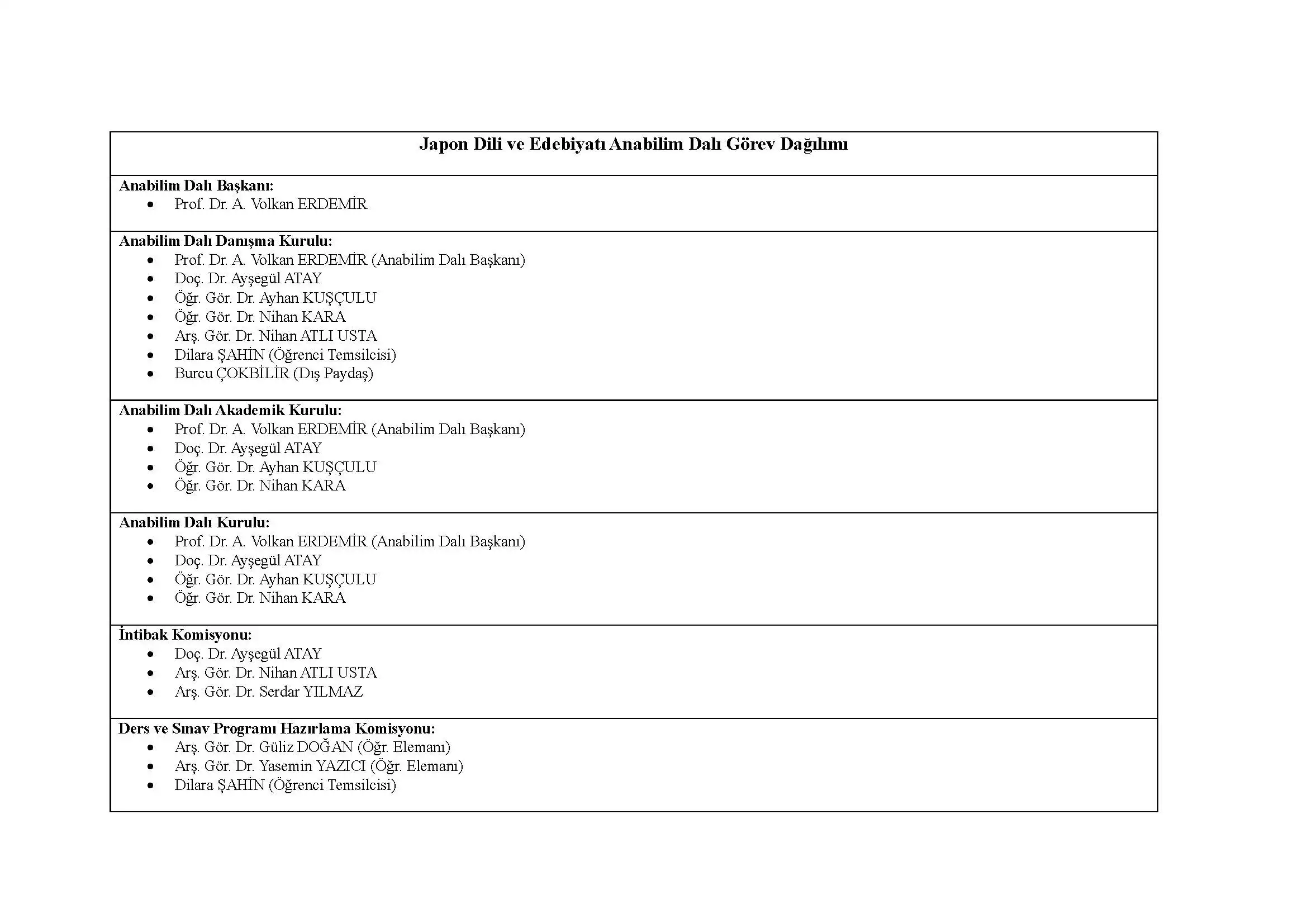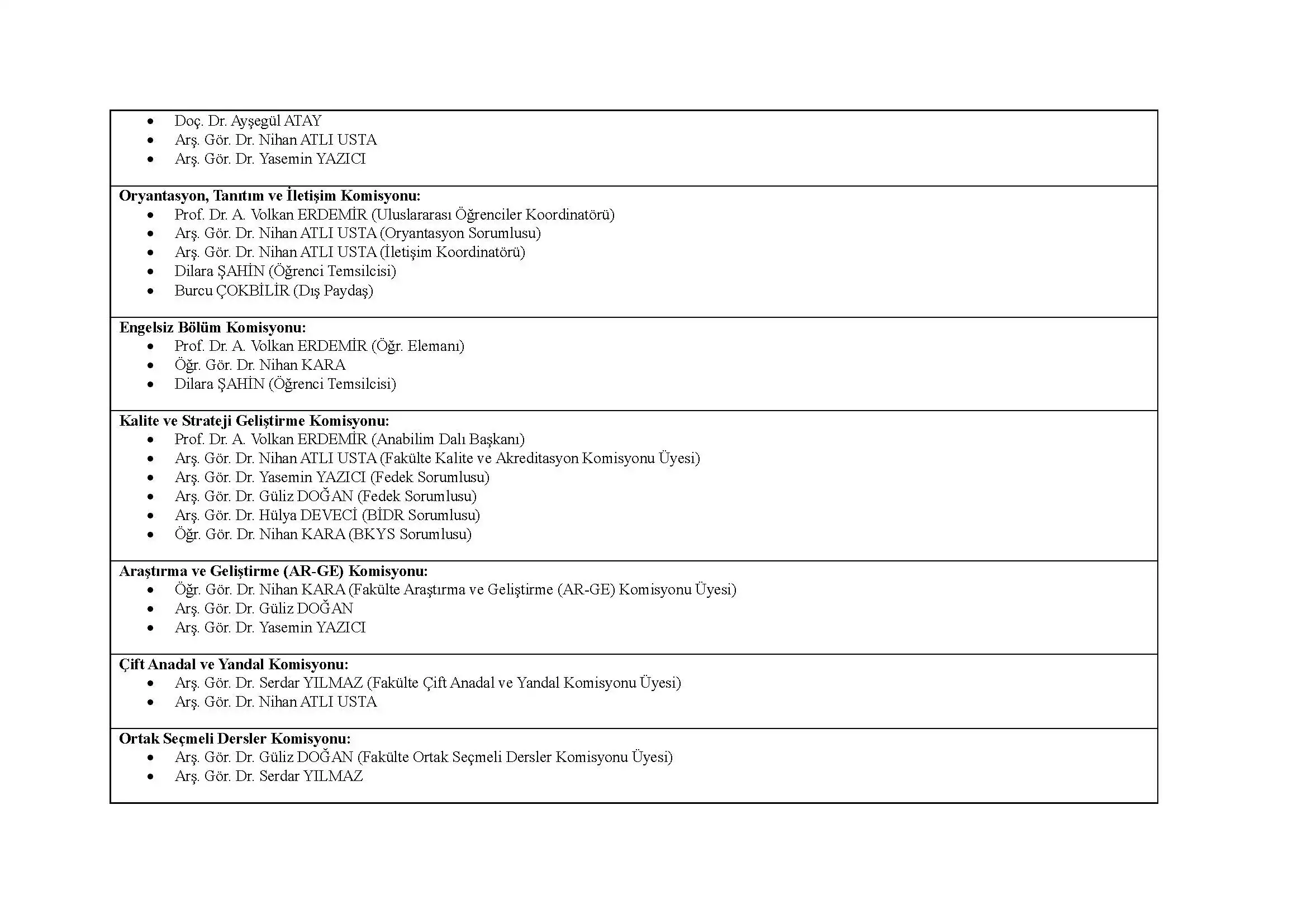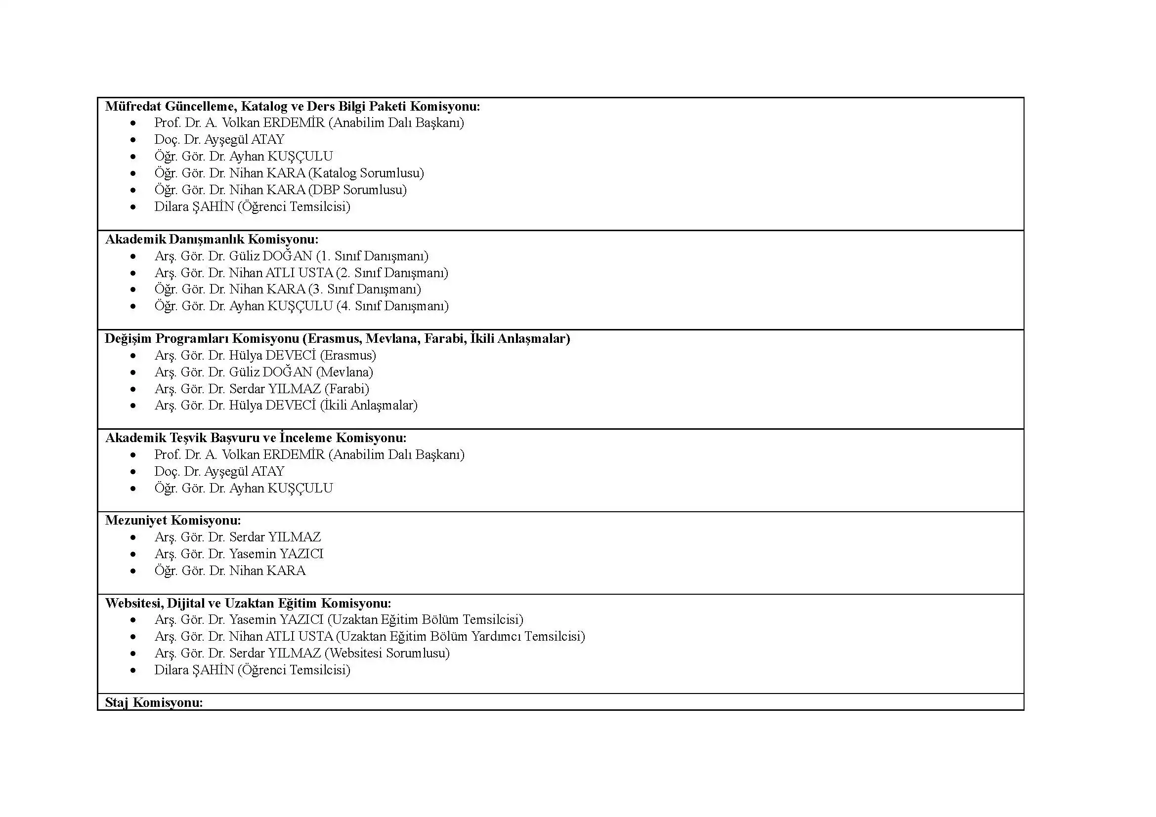 Akademik Danışmanlar Öğrenci Görüşme Saatleri