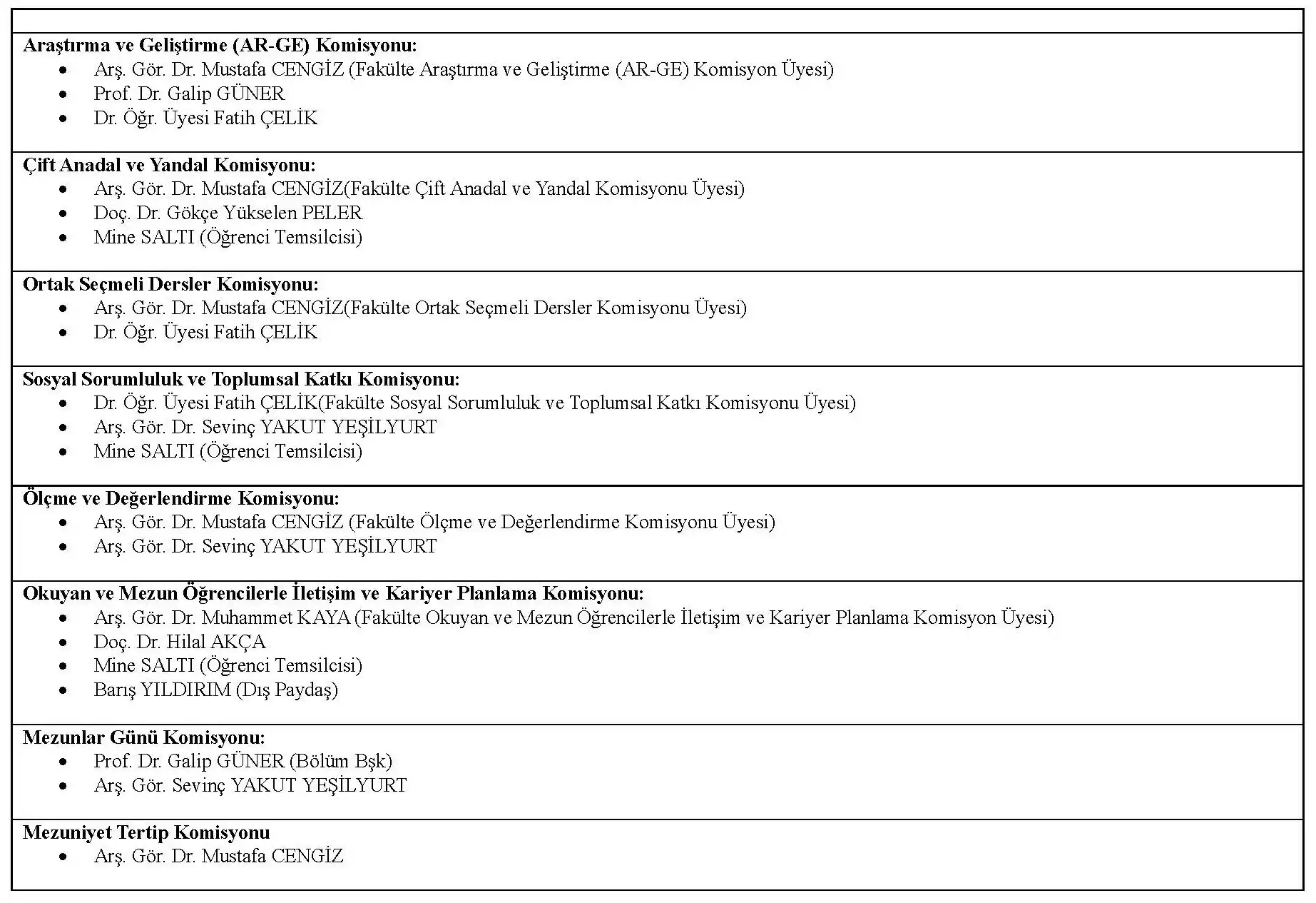 (Yönetim ve Komisyonlar)