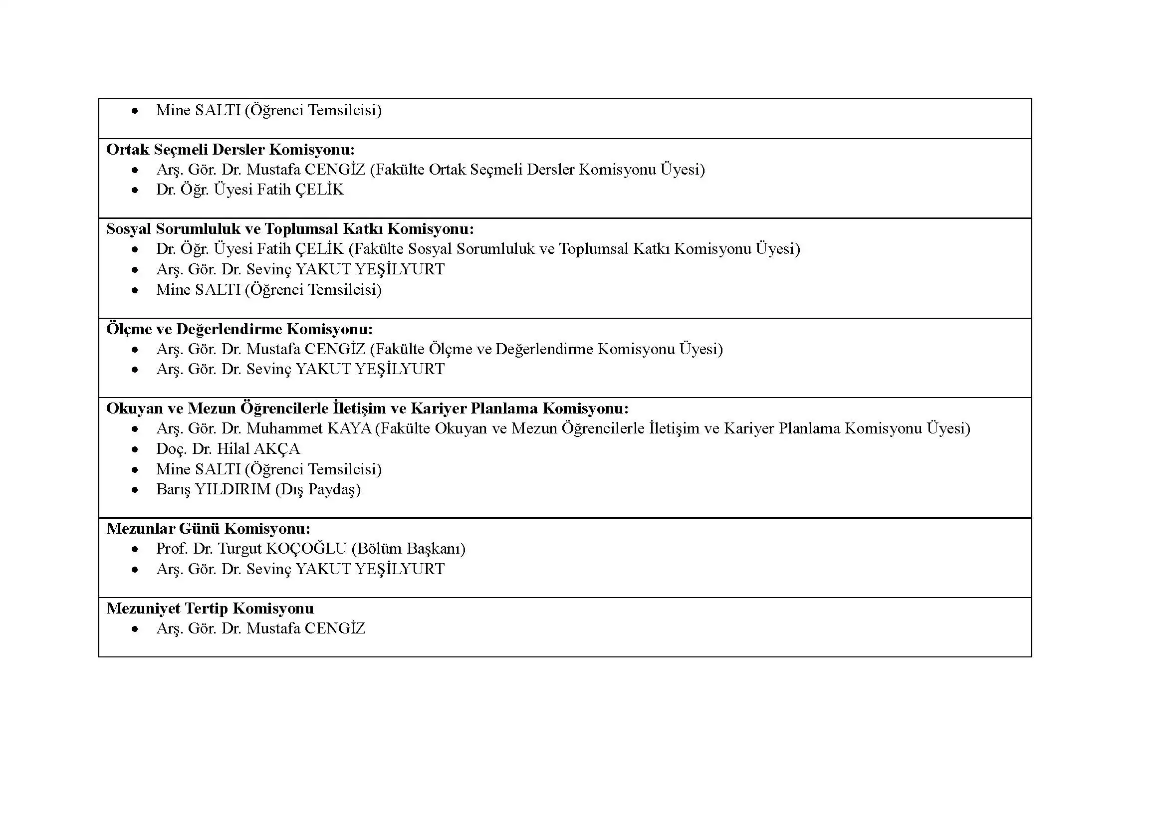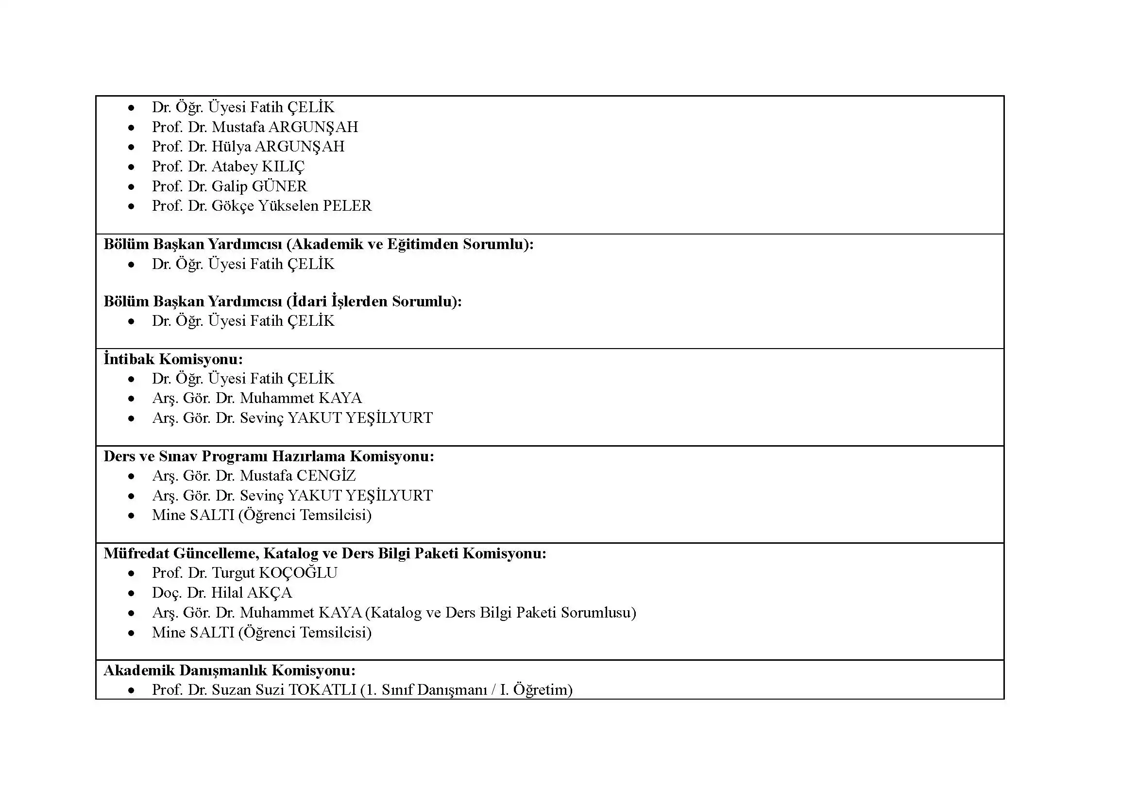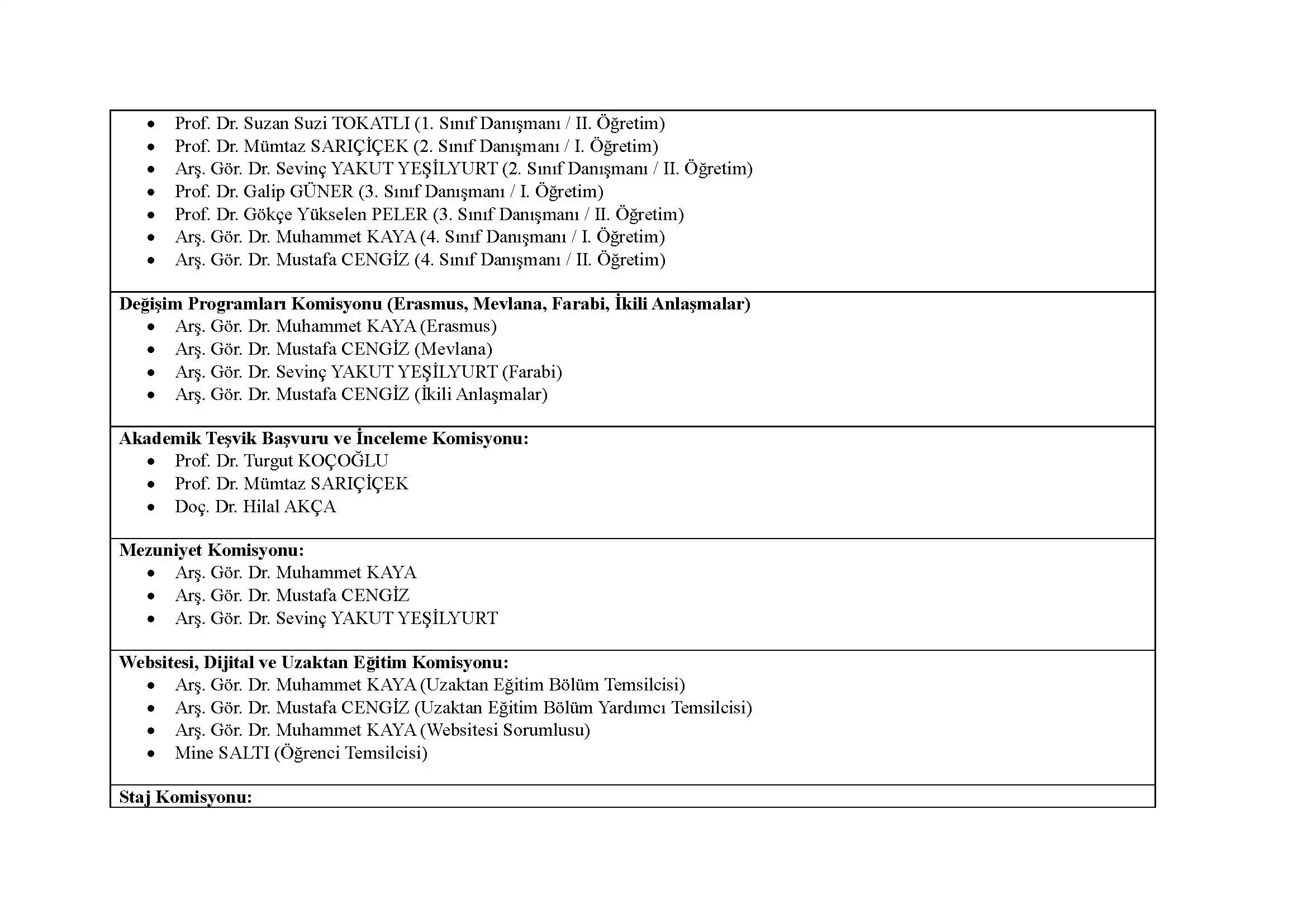Akademik Danışmanlar Öğrenci Görüşme Saatleri