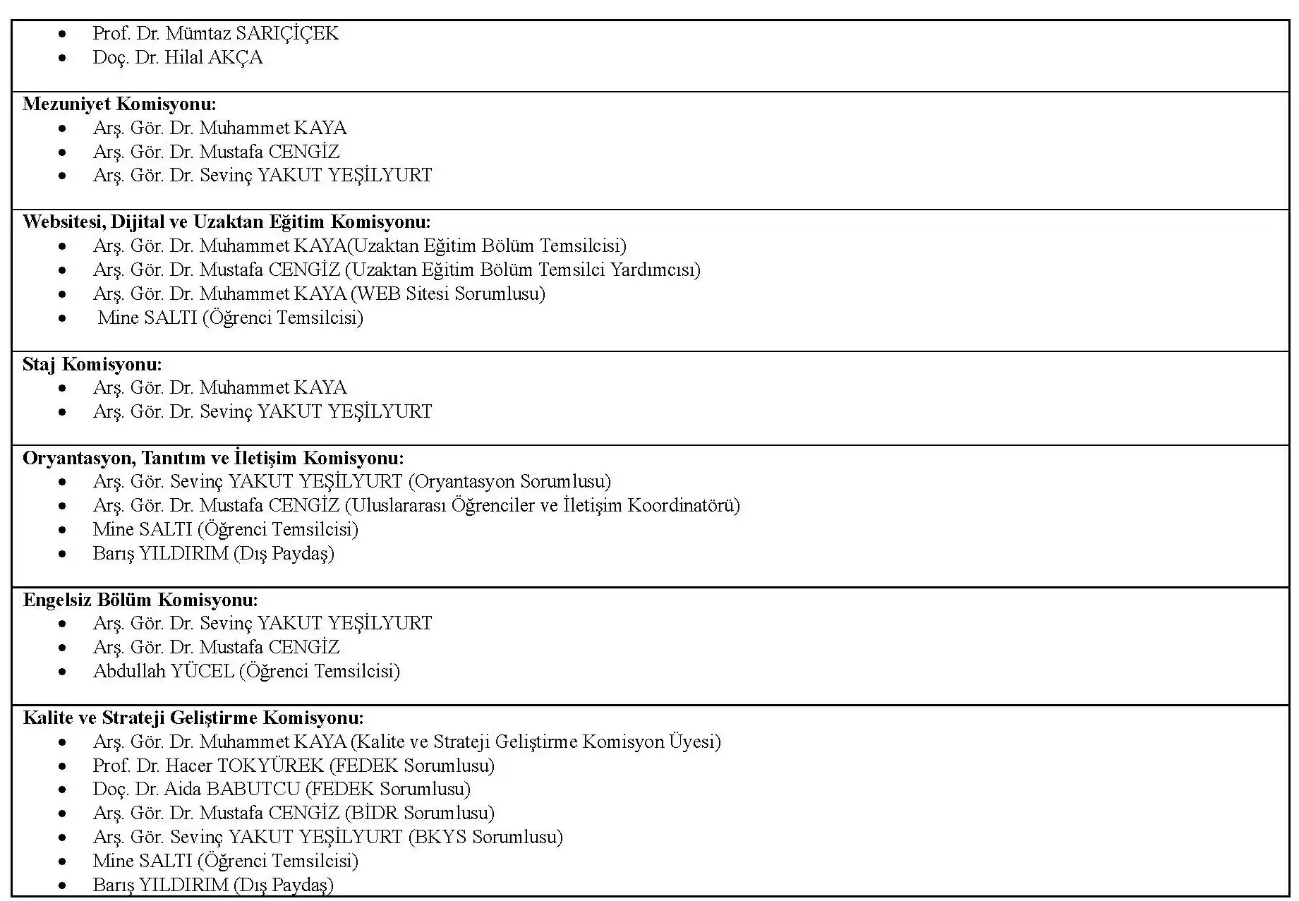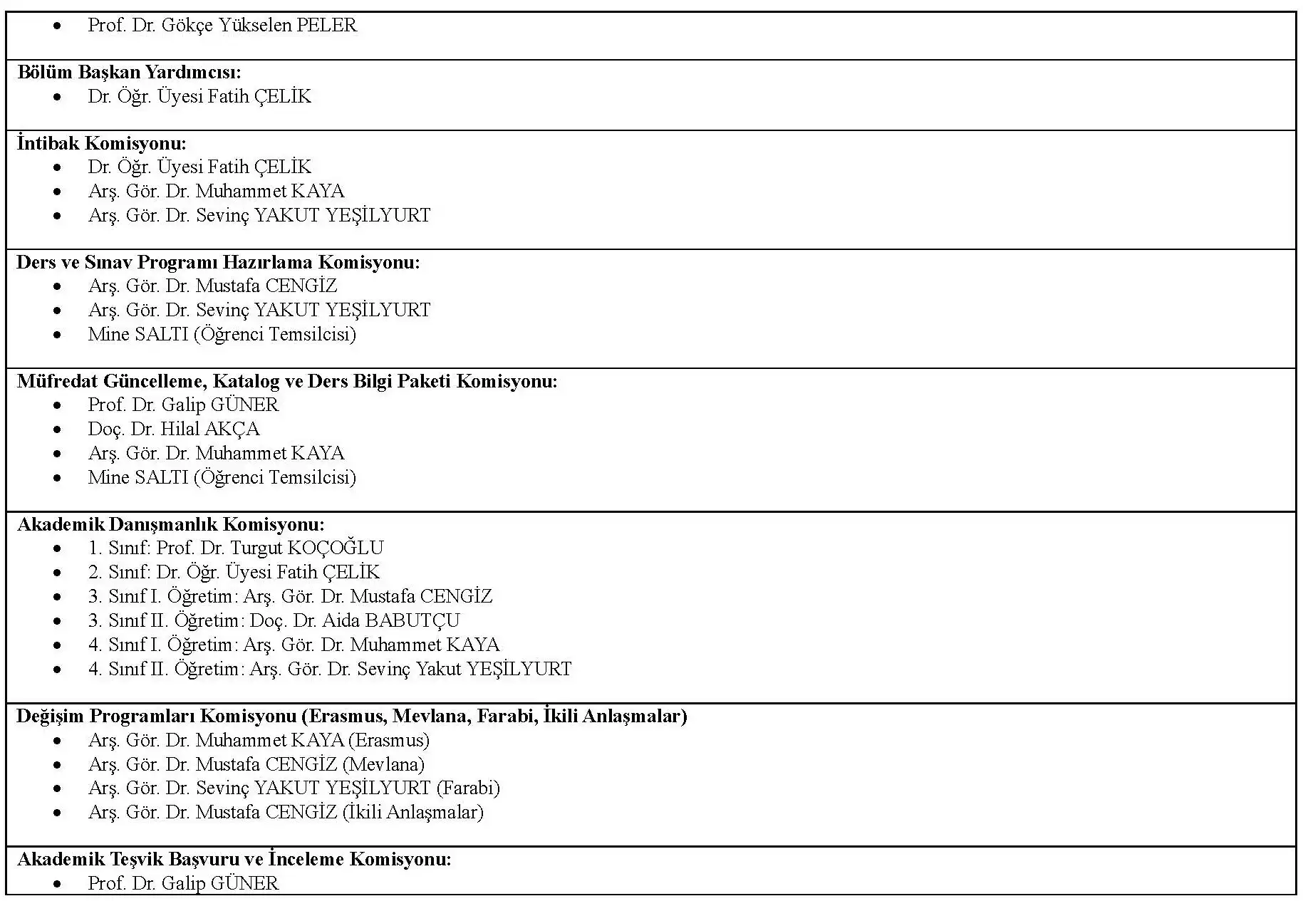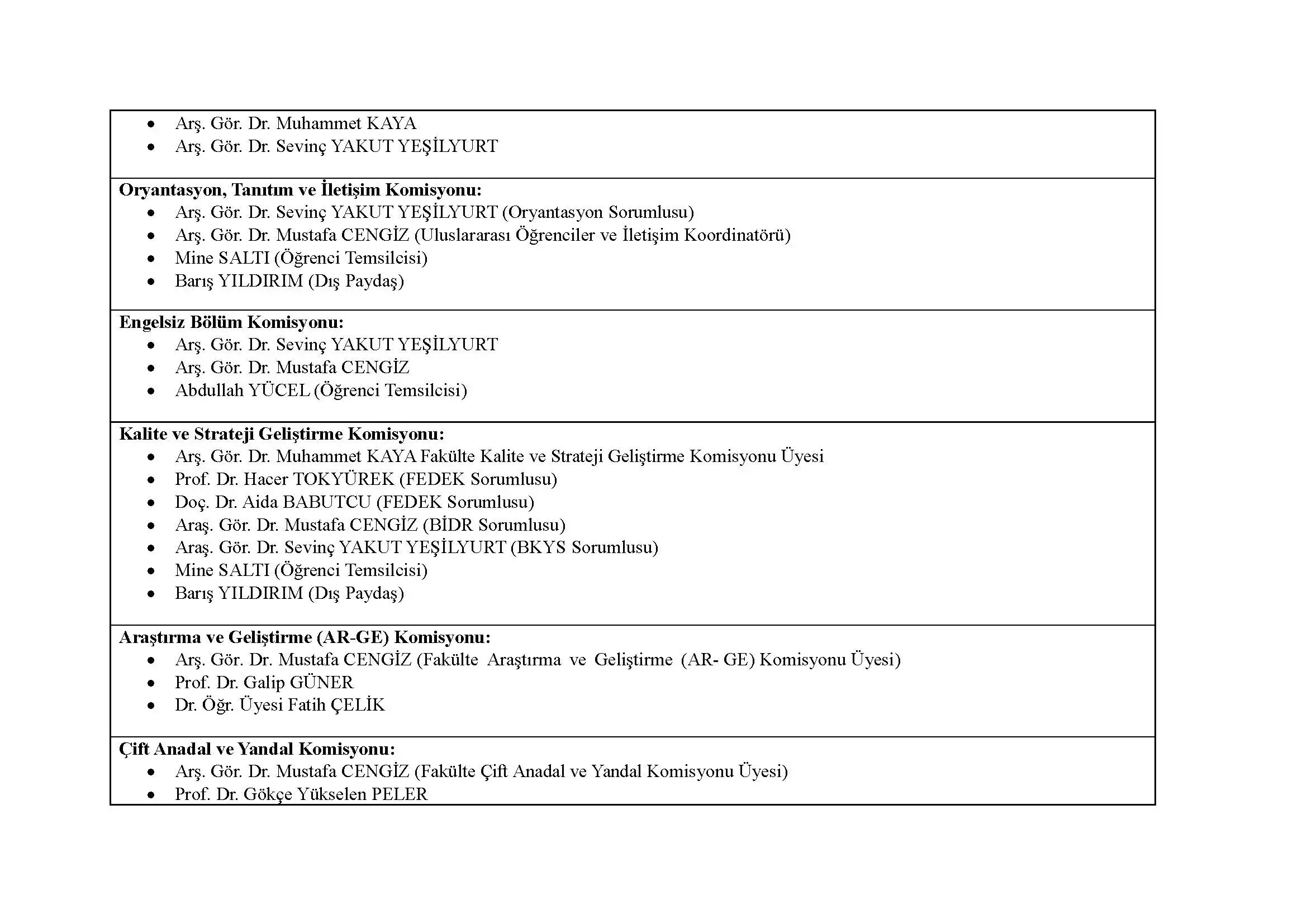 Akademik Danışmanlar Öğrenci Görüşme Saatleri