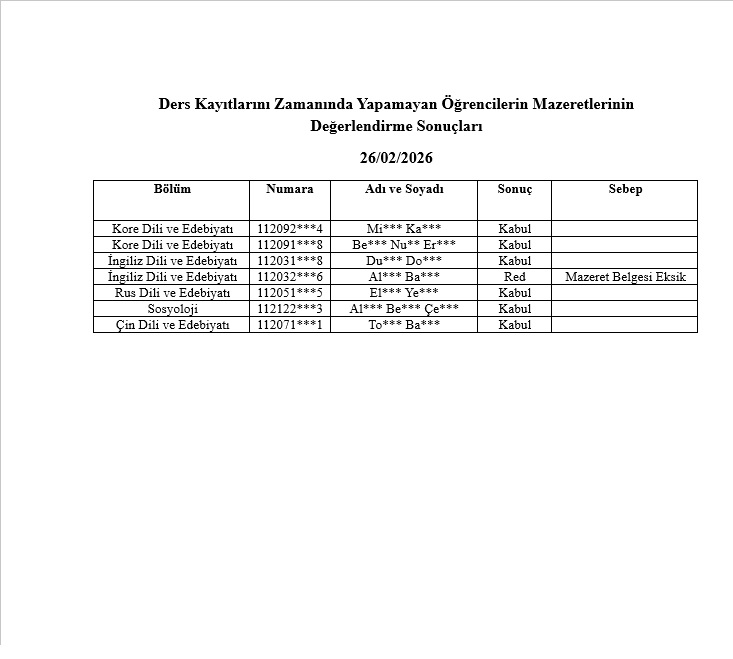 Ders Kayıtlarını Zamanında Yapamayan Öğrencilerin Mazeretlerinin Değerlendirme Sonuçları