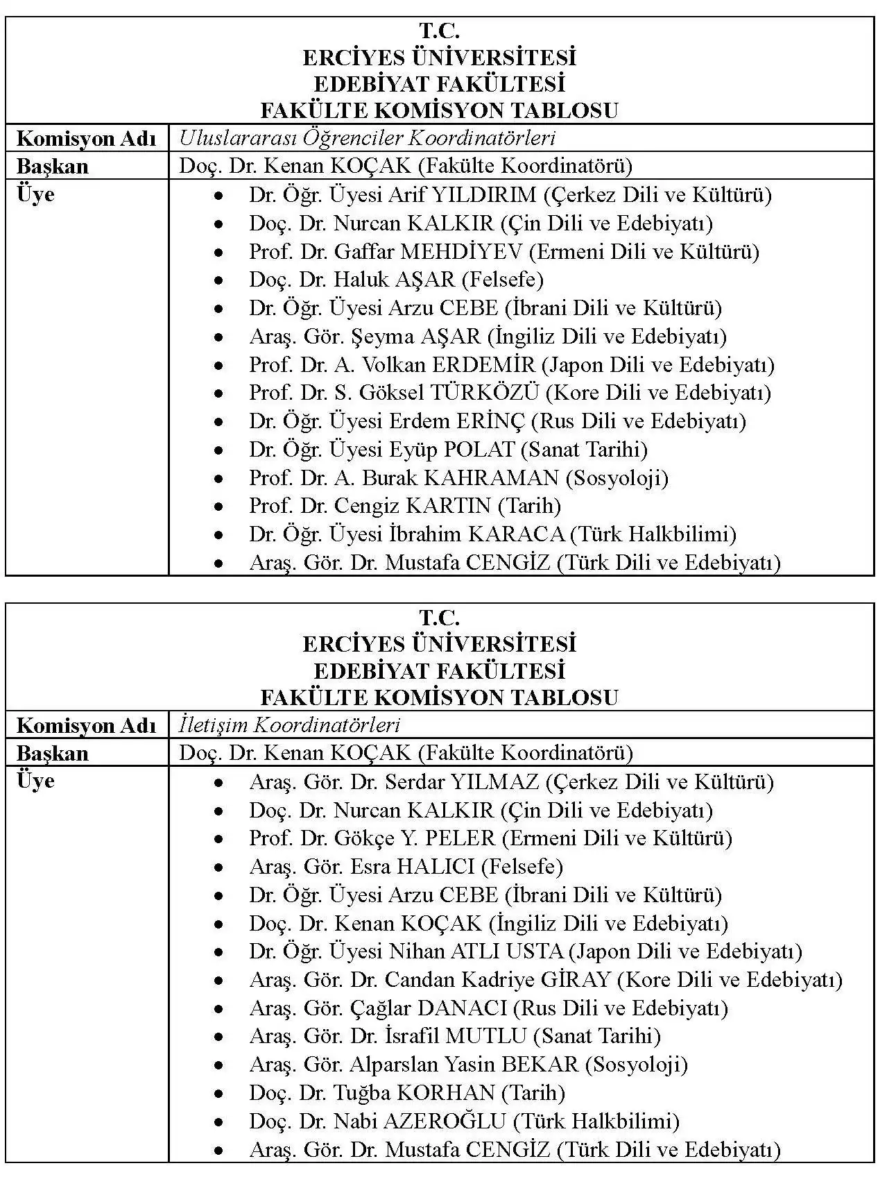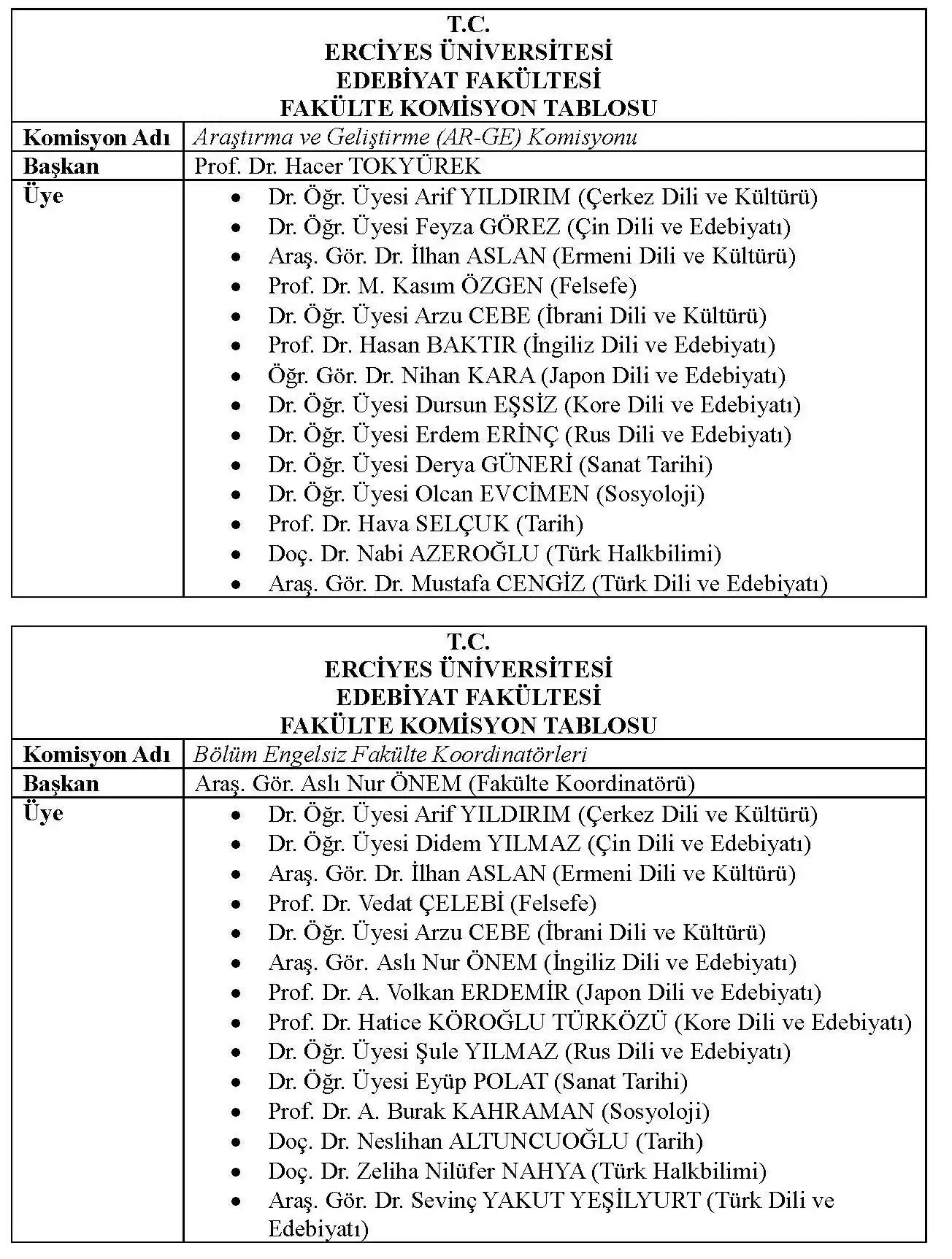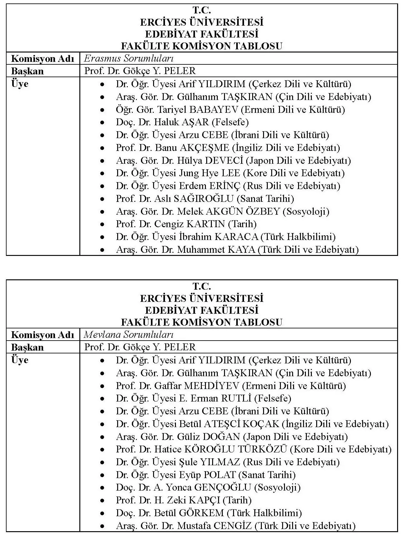 Akademik Danışmanlar Öğrenci Görüşme Saatleri